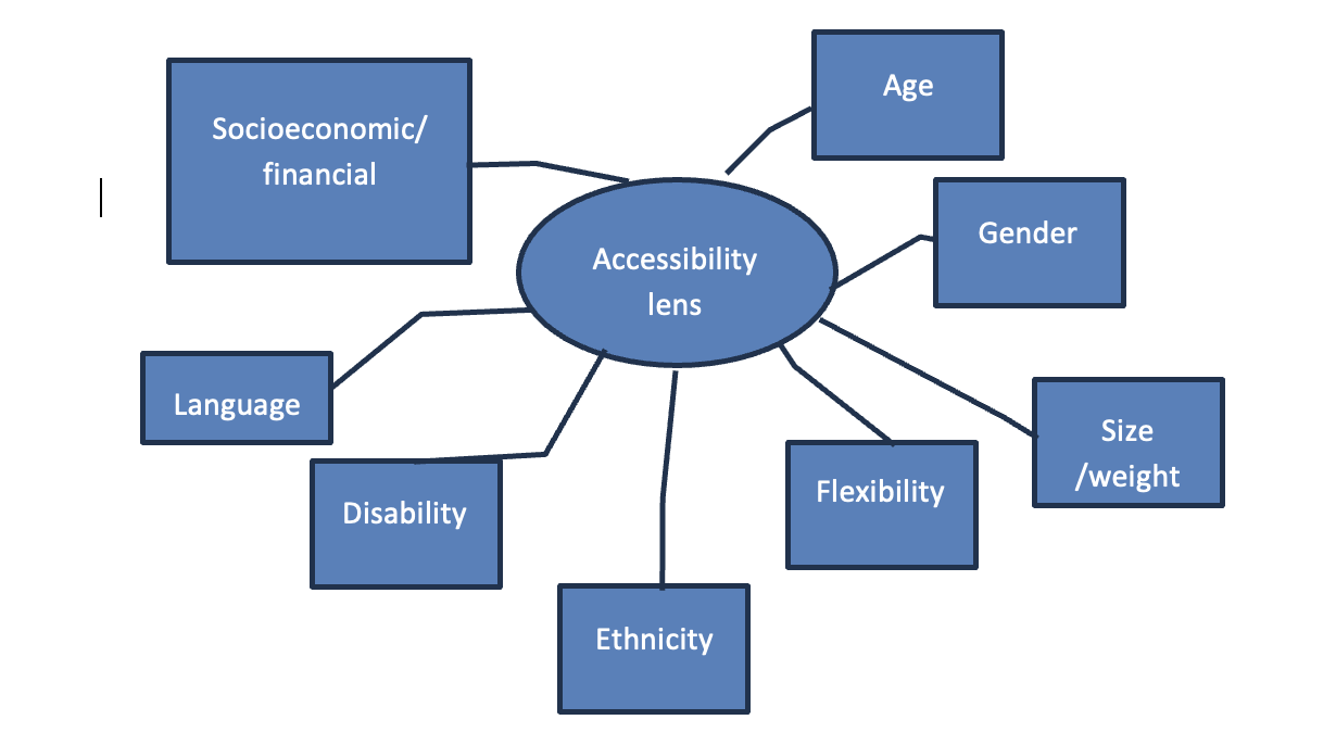 In current parlance, accessibility has multiple lenses, each of which has barriers to entry which may be tangible (I.e. quantifiable) or intangible (I.e. unquantifiable but perceived or experienced by people).